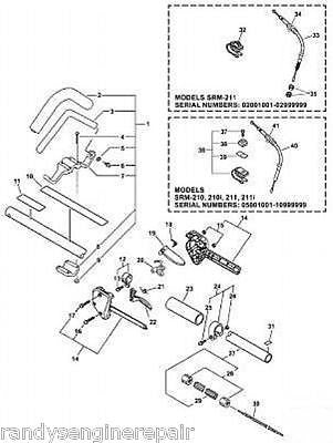 · SRM-210 S/N: 05001001 - 05999999-->Handle, Stop Switch, Throttle Cable, Driveshaft